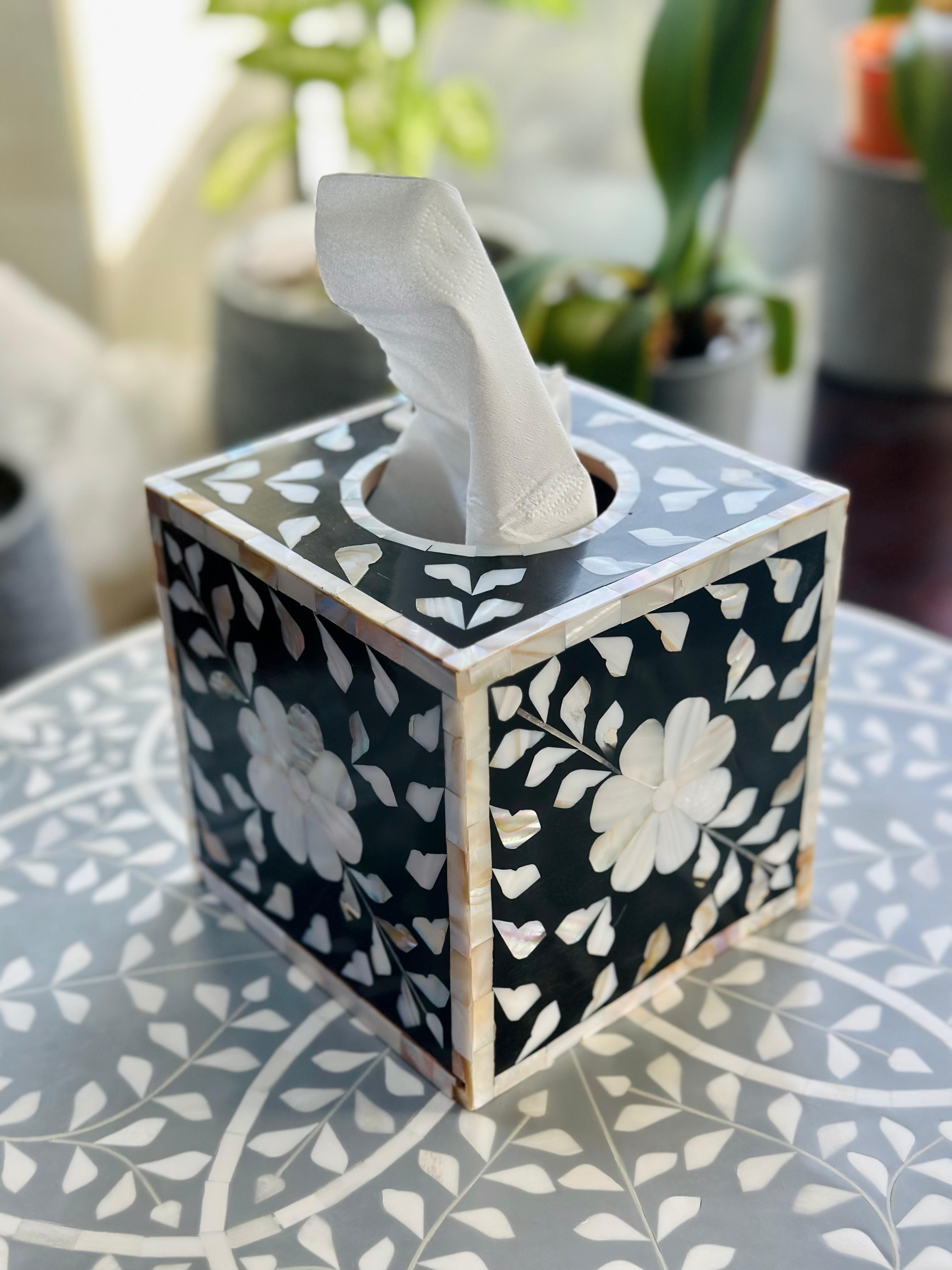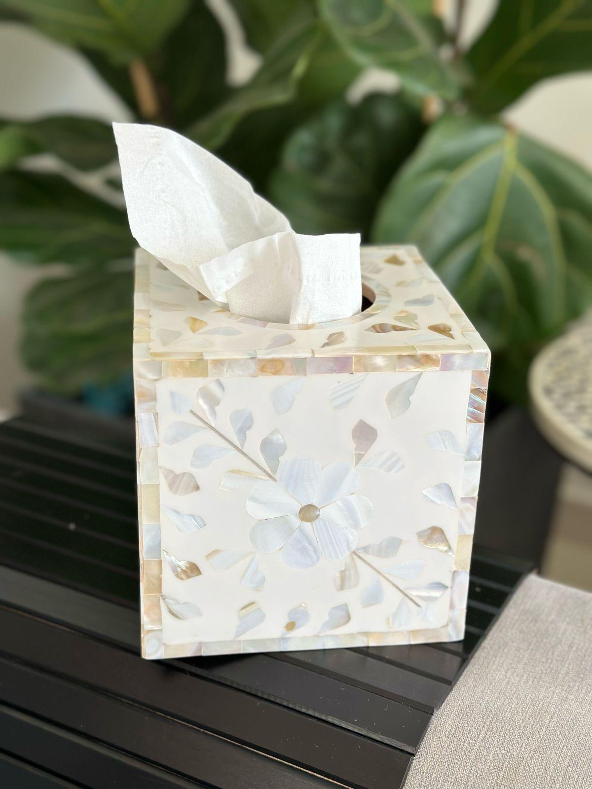 Introducing our exquisite Mother of pearl tissue box that doubles as a functional art! Elevate any living space with its charming floral motifs and intricate patterns that beautifully complement any décor.